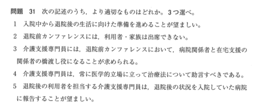利用者の入院後におけるケアマネの支援活動について問われていますが、