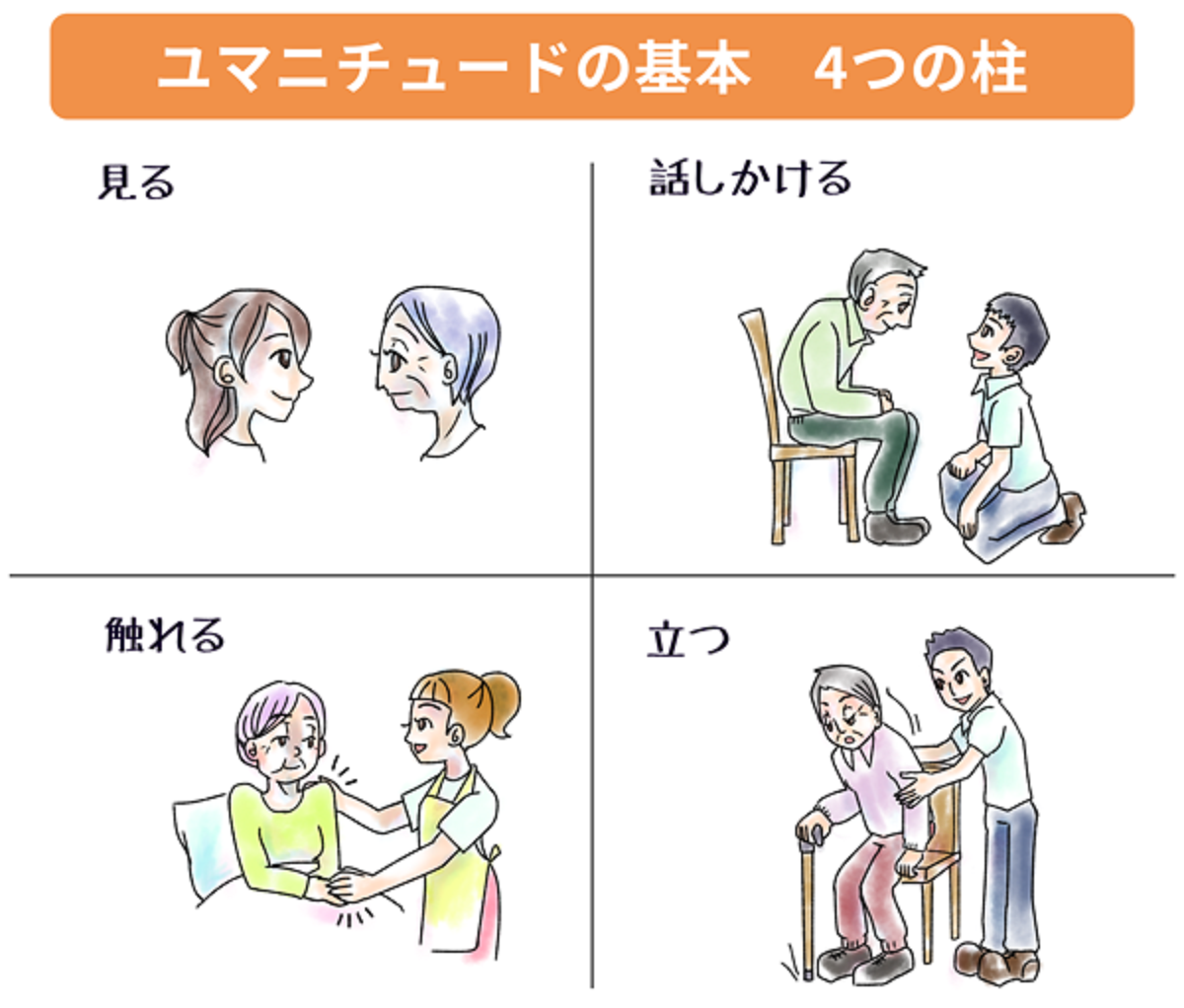目線を合わせること、低いトーンで話すこと、手のひらでしっかりと触れることがユマニチュードにおける基本であり、立位を取る機会を作らないと、身体機能まで低下してしまいますよね…
