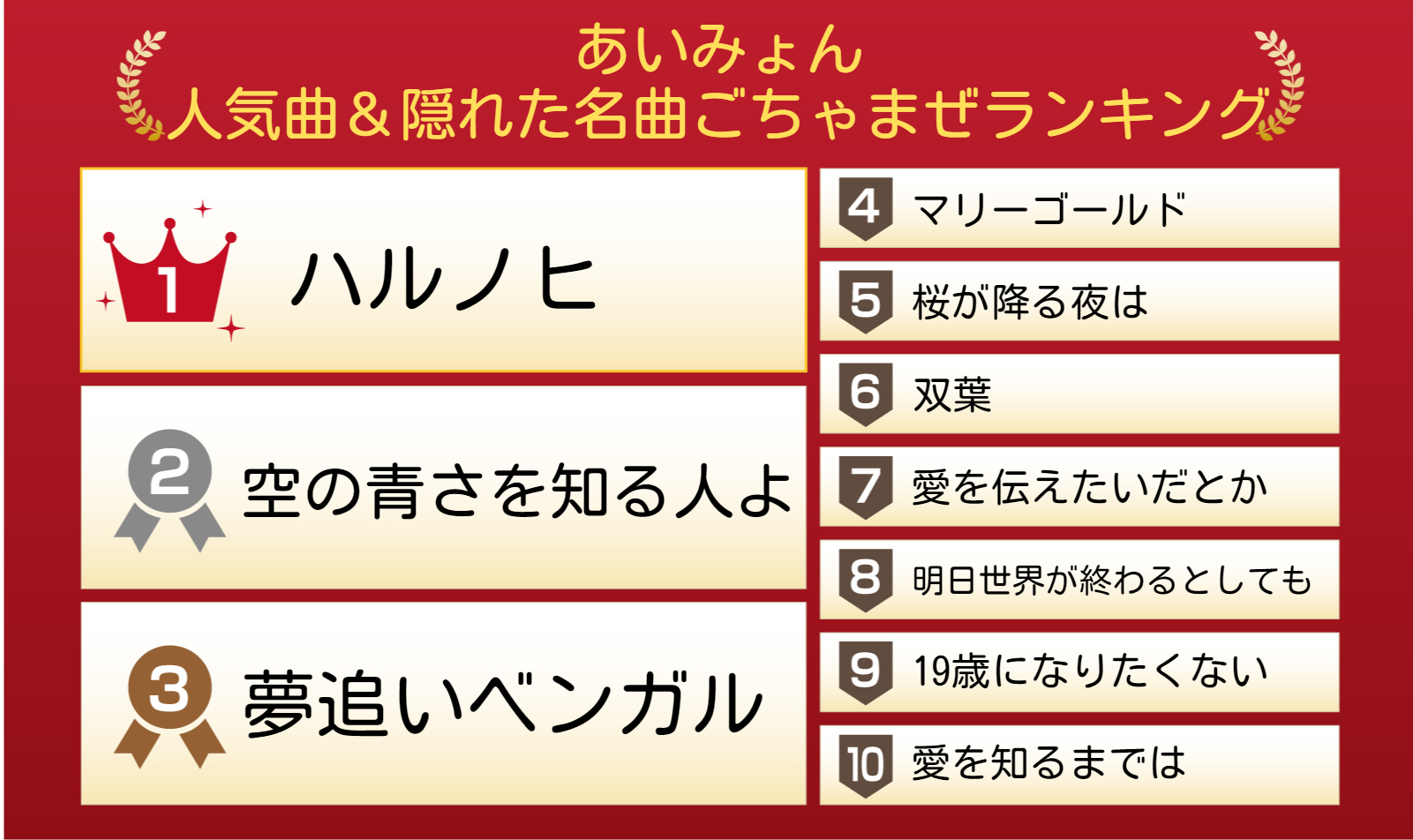 ランキングとはいっても決して優劣のあるものではなく「筆者がオススメする楽曲を並べました」的な捉え方をしてもらうといいでしょう。