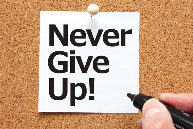 I can tellの後に続く言葉は「Never give up」(決して<夢を>あきらめない)