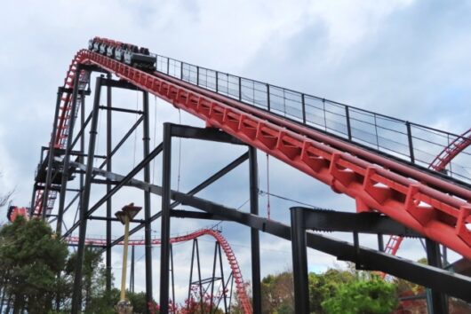 ジェットコースターが走り出して、徐々に最高到達点に向かっている様子。