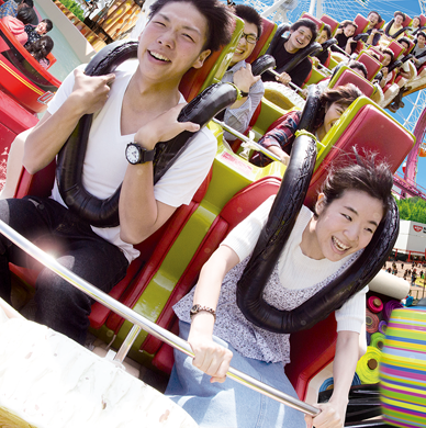 女の子の「きゃ!」、「こわ~い!」、「もうダメーーー」といった声が聞こえてきそうですし、それを「大丈夫だよ。しっかり掴まって」といって余裕ぶりながらも少し表情をこわばらせる男の子の姿が目に浮かんで来るでしょう。