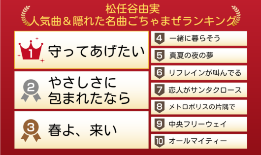 【松任谷由実】人気曲&隠れた名曲ごちゃまぜランキング