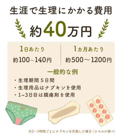 あくまでも「平均」なので、生理が長引いた場合や不正出血などがあった場合などは含まれていないことを考えると、その金額はさらに増えることを想像するのは簡単ですよね…