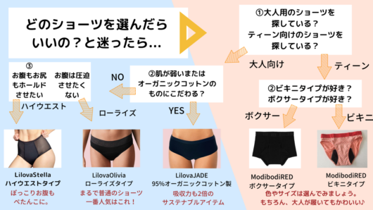 結論としては「始まりを感じたらショーツ着用→多い日になるとナプキンやタンポンを併用→減り始めたらショーツのみ着用」といった感じにすると良いでしょう。