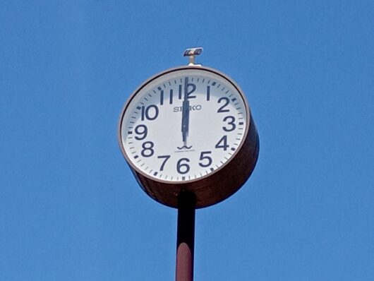 正午という時間は、眩い日の光の中で時計の長針と短針が重なり合う時。